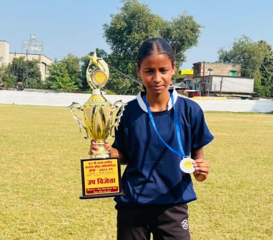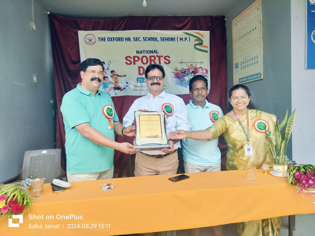 The Oxford Hr. Sec. School Team Captain receiving award from the Hon’ble Minister Shri Prabhuram Choudary on the occasion of 75th Independence Day
