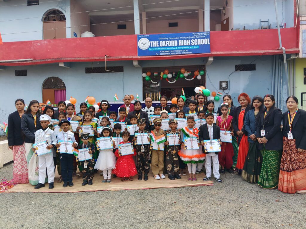 स्थानीय दी ऑक्सफोर्ड हायर सेकेण्डरी स्कूल सीहोर में दिनांक 26 नवंबर 2021 को संविधान दिवस के अवसर पर संविधान की प्रस्तावना का वाचन किया गया। संस्था अध्यक्ष जोली कुरियन द्वारा संविधान दिवस के अवसर पर संविधान की प्रस्तावना का वाचन कर, विद्यार्थियों को संविधान द्वारा प्रदत्त अधिकार एवं कर्तव्य से विस्तार से अवगत कराया गया। जोली कुरियन द्वारा बताया गया कि विद्यार्थी राष्ट्र का भविष्य होते हैं। अतः उन्हें संविधान द्वारा दिए गए अधिकार एवं कर्तव्यों का पालन कर आदर्श नागरिक की भूमिका निभाना चाहिए। इस अवसर पर प्राचार्या डॉ. बीना जे. कुरियन एवं समस्त विद्यालय परिवार उपस्थित रहा।